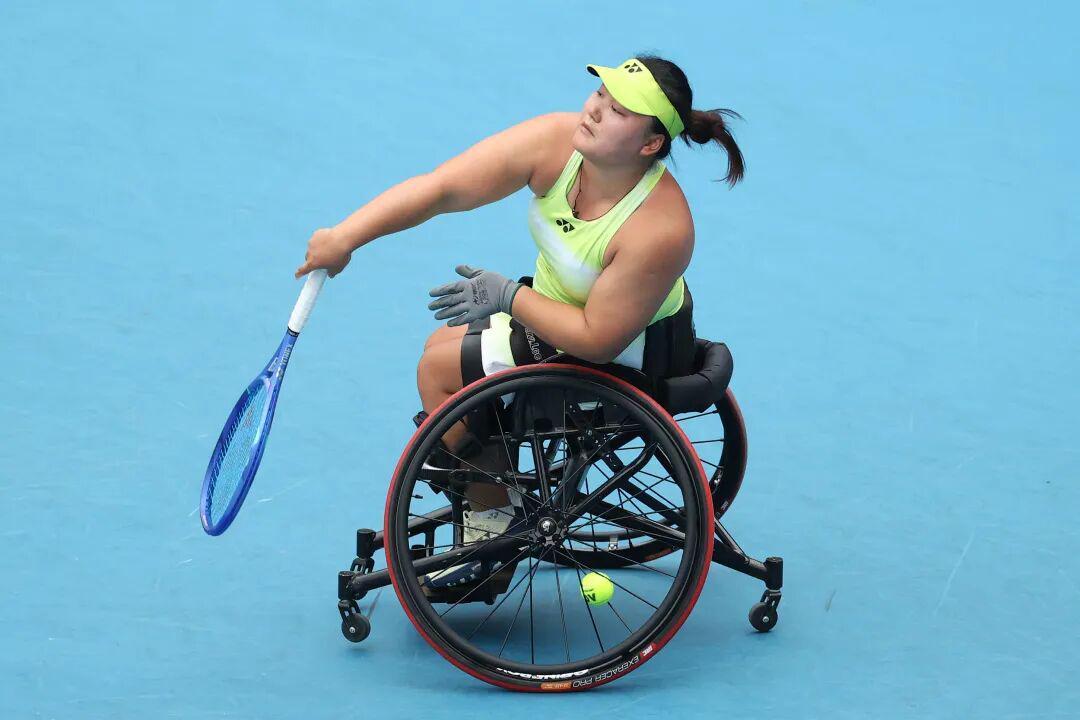 2026年澳大利亚网球公开赛轮椅组女单决赛,中国选手李晓辉以6-1/6-2直落两盘横扫荷兰选手德格鲁特,夺得冠军!